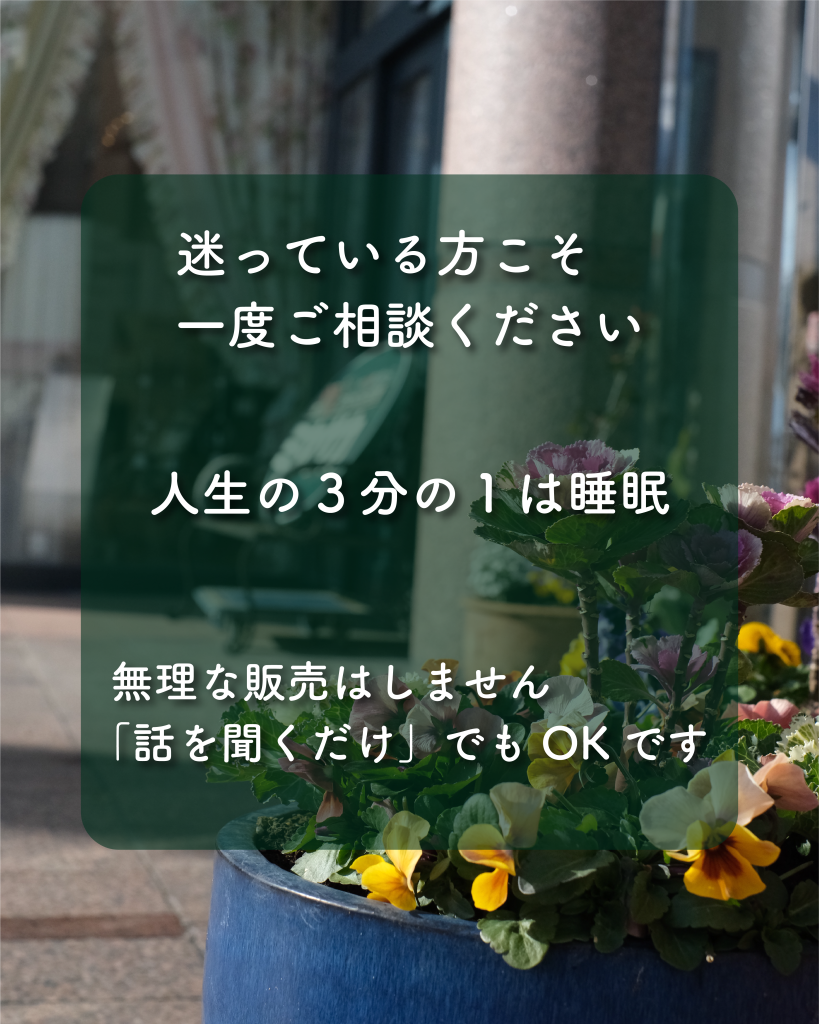 それでも私たちが専門店としてお伝えしたいのは、 「上質な眠りをお手伝いさせていただきたい」ということ。