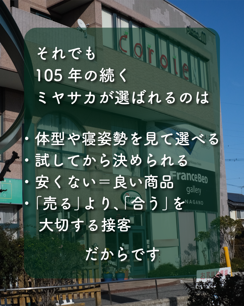 それでも私たちが専門店としてお伝えしたいのは、 「上質な眠りをお手伝いさせていただきたい」ということ。