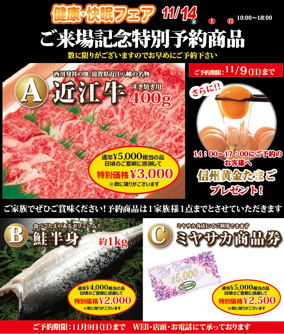 ご来場記念特別予約商品は11/9(日)までご予約承っております