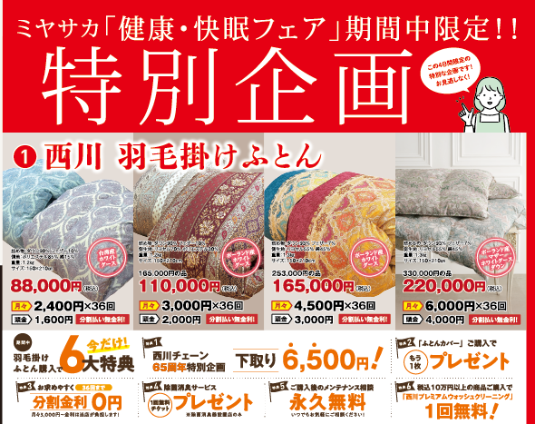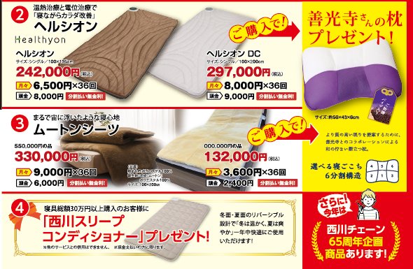 特典① 西川チェーン65周年特別企画下取り6,500円!