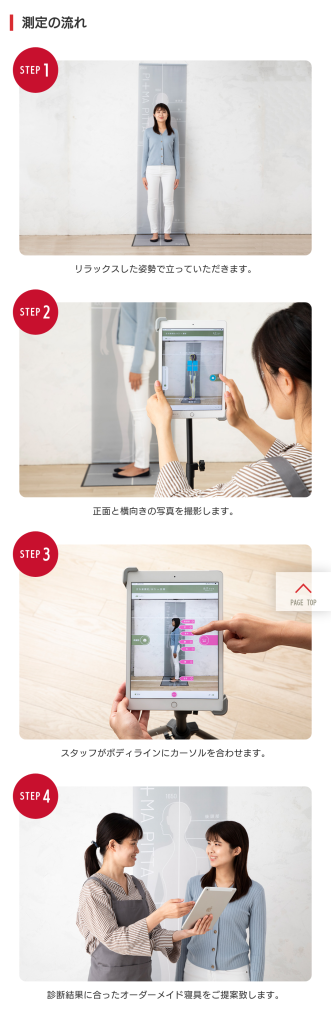 専用の測定器で、首のカーブや後頭部の高さを ミリ単位 でチェック。